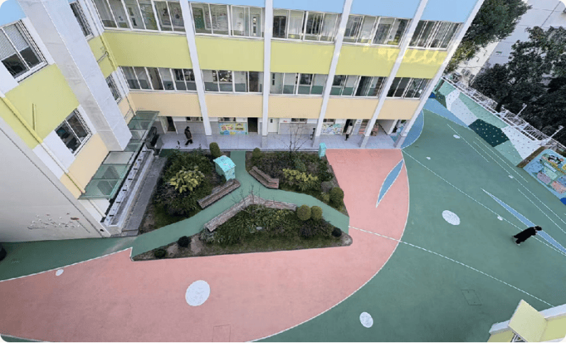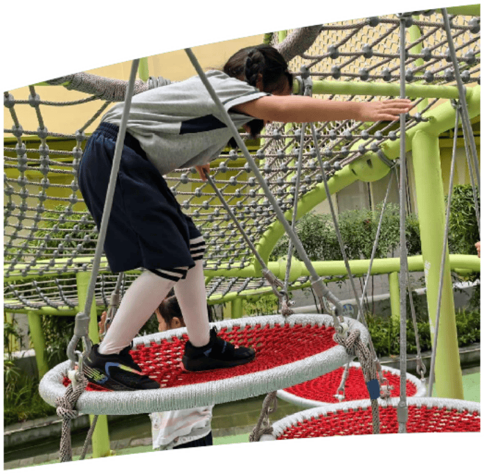 教师停车位被果断拆除,改造中庭花园,新增“FUN肆乐跑区”“攀爬综合活动区”等运动场地,引入肋木架、梅花桩、定向运动点签器等设施。地面不够?那就向立体空间要资源——围墙上增设攀岩点,屋顶开辟兼具安全性与挑战性的“勇敢者之路”,走廊布置摸高墙。曾经局促的校园,被打造为“无处不运动”的生态空间。通过立体化改造,学校扩容近500平方米运动场地,生均活动面积提升25%。