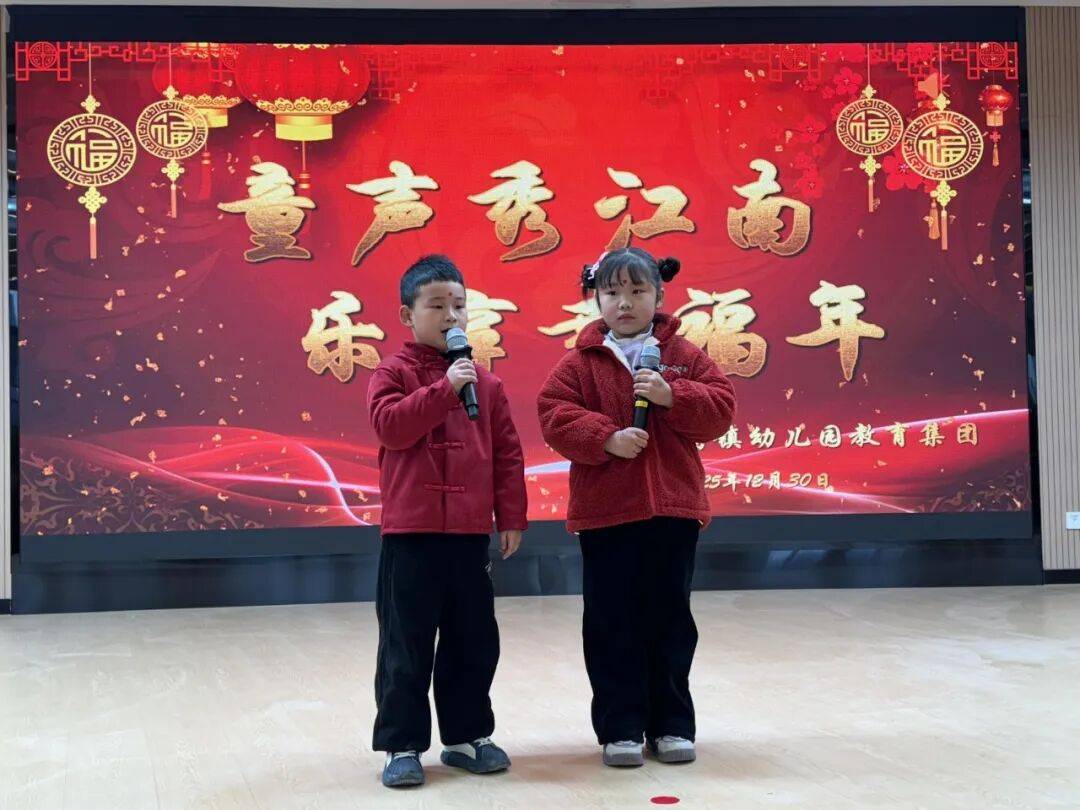 △江南镇幼儿园以“童声秀江南,乐享幸福年”为主题,在新园中举行游戏活动。孩子们在活动中有吃有玩,欢度幸福年。