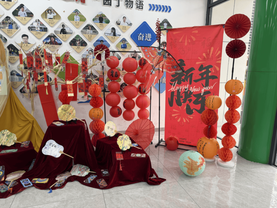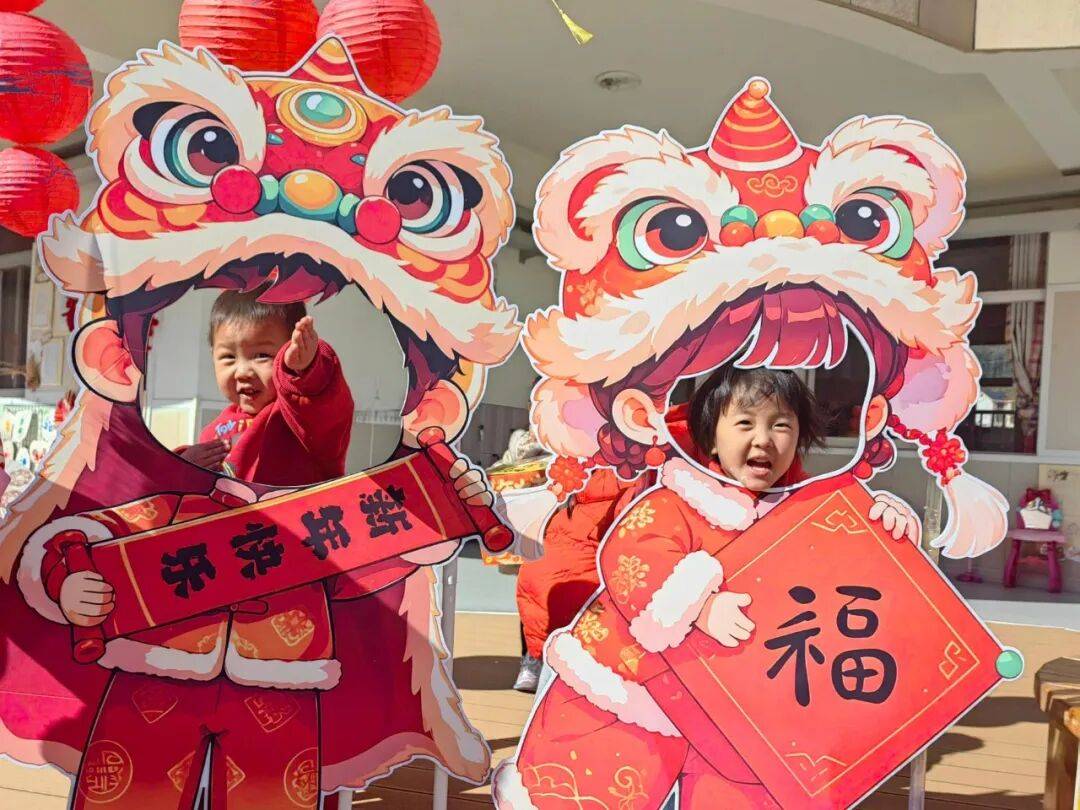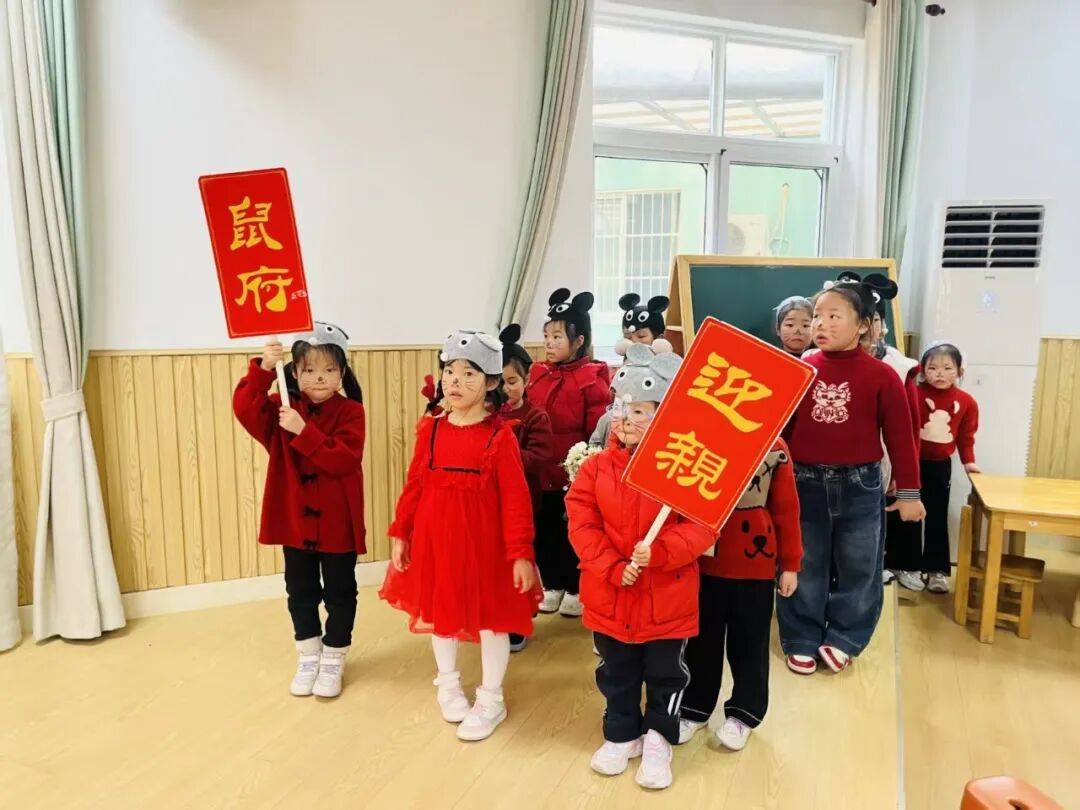 △江南镇实验幼儿园教育集团的孩子们身穿红衣,写福字、玩游戏、品年味、绘新春,在欢乐体验中理解元旦的意义。