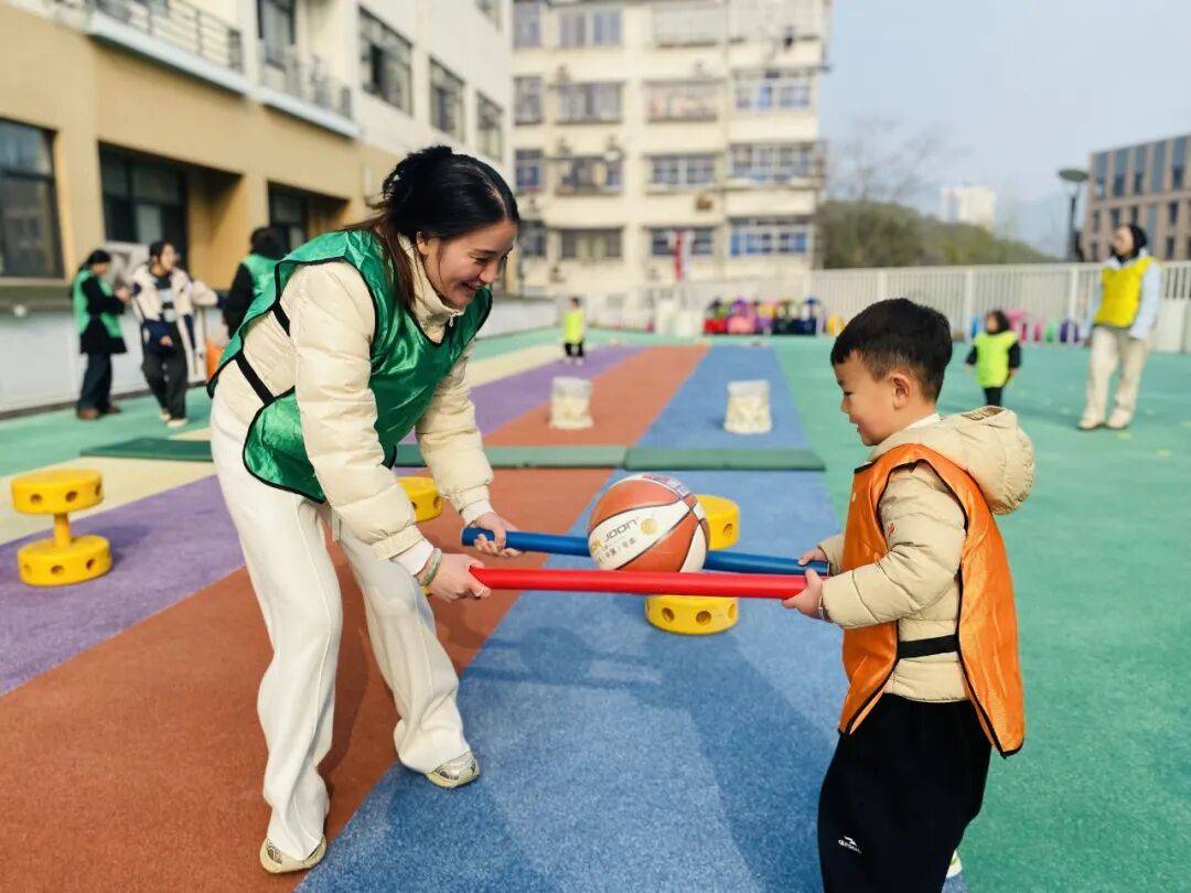 △凤川街道中心幼儿园萌娃们身着红衣,在福气小马冲冲冲、套福圈等12个特色游戏中欢乐闯关,沉浸式感受新年氛围。