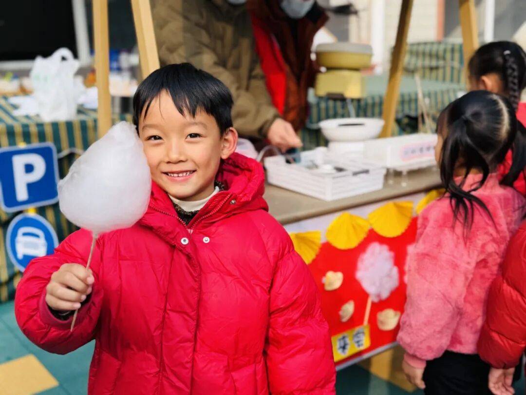 △瑶琳镇幼儿园开展“迎新年·寻年味”主题活动。小朋友拿着甜甜的棉花糖,脸上洋溢着灿烂笑容。