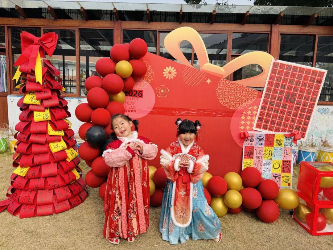 △未来星幼儿园举办“富春潮集·古韵迎新”元旦活动。幼儿与家长在新年场景中体验美食、手作与民俗游戏,共赏鼓乐表演,于温馨雅致的文化氛围中喜迎新年。