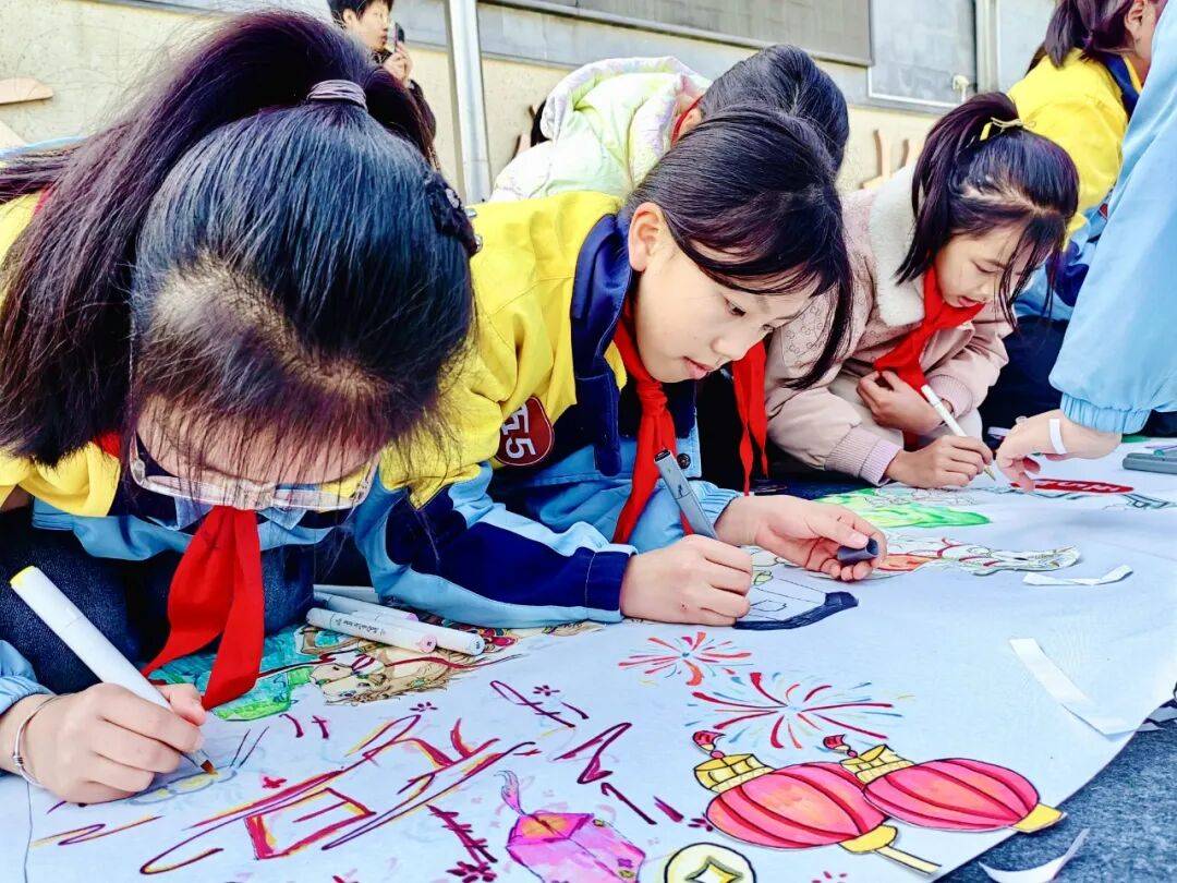 △洋洲小学举办“桐庐与马”主题绘长卷活动。一卷卷画布徐徐铺开,小画家们齐聚画布前,绘骏马、展桐庐风光、抒新年心愿。